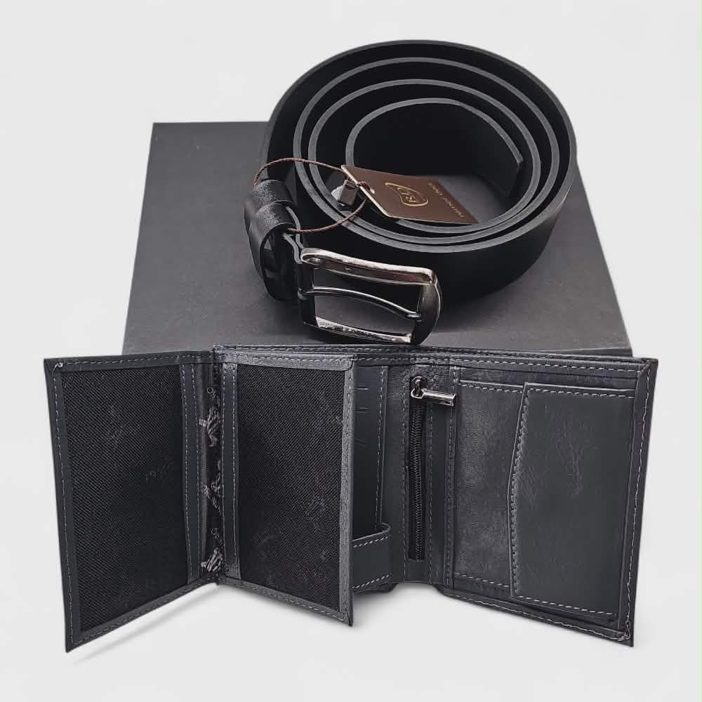 Арт. номер: 1515-2Мъжки подаръчен комплект с изчистена линия и изискан стил, включващ портмоне и колан от естествена кожа. Портмонето с размер 9 х 11 см е практично и удобно за ежедневна употреба, а коланът с ширина 3,5 см е класически аксесоар, който се съчетава лесно с различни визии. Комплектът е опакован в луксозна подаръчна кутия, готов за поднасяне.