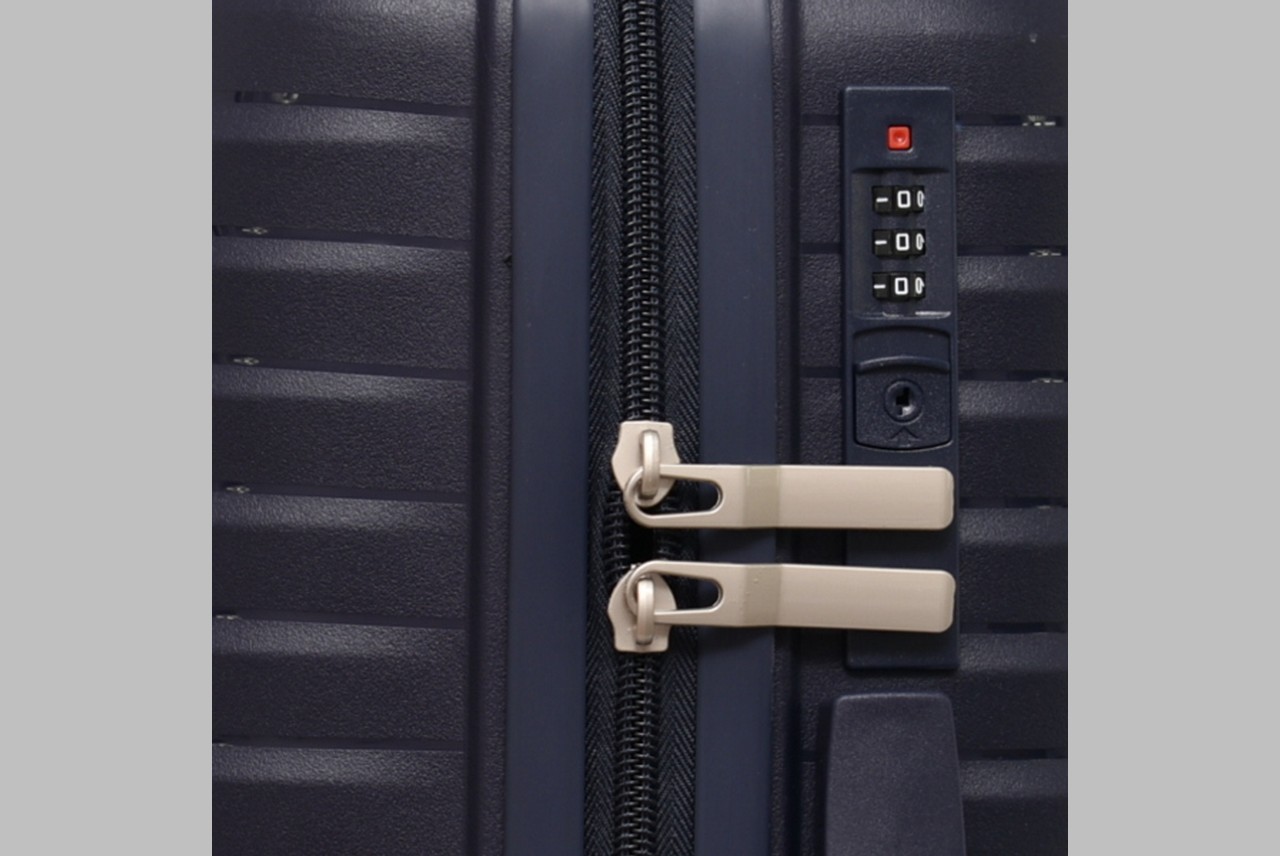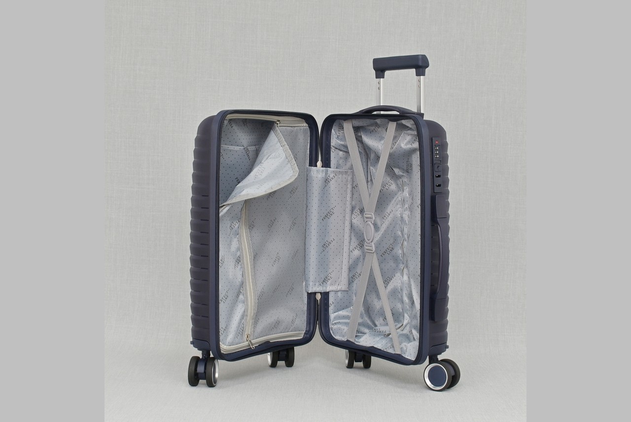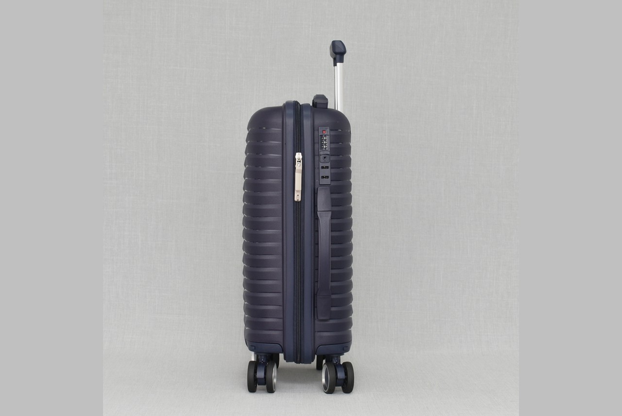 Арт. номер: 1616Компактен и издръжлив куфар от полипропилен, проектиран специално за ръчен багаж – дори при нискотарифни авиокомпании. Оборудван е с четири двойни свалящи се колелца, въртящи се на 360°, за безшумно и лесно придвижване. Телескопичната дръжка с две степени, двете дръжки за носене и четирите стабилни крачета осигуряват удобство при всяка ситуация. Вътрешността включва отделение за дрехи с цип, ластични презрамки и практичен джоб за аксесоари. Заключването с шифър гарантира сигурност по време на път.