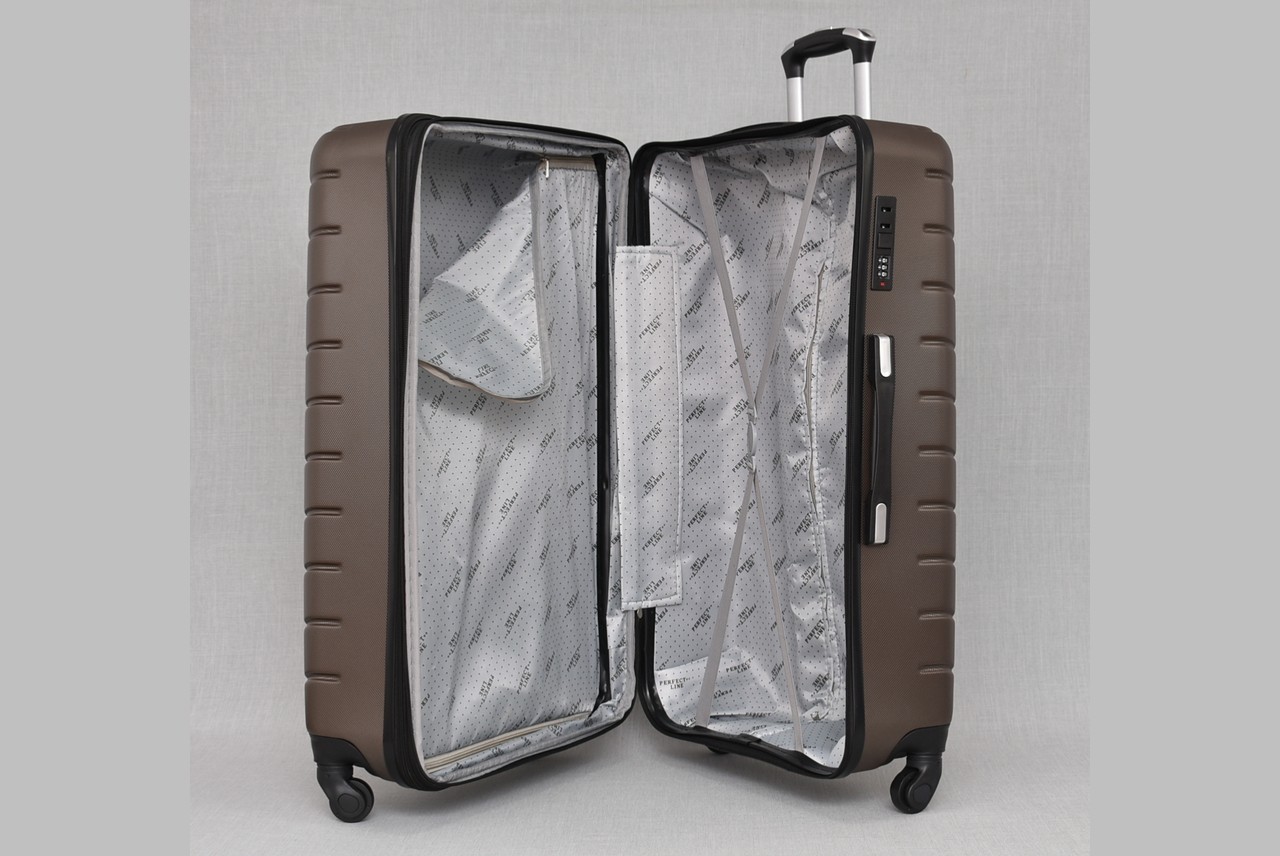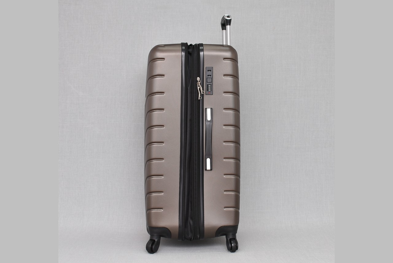 Арт. номер: 2052-21Практичен и модерен куфар от висококачествен ABS материал, който осигурява отлична защита на багажа. Четирите колелца се въртят на 360°, за да осигурят леко и безпроблемно движение. Телескопичната дръжка с две степени и двете дръжки за носене позволяват лесно транспортиране. Вътрешността е снабдена с отделение с цип, отделение с ластични презрамки и възможност за разширяване чрез цип. Сигурността на вашия багаж е гарантирана чрез вградено шифрово заключване, а стабилните крачета предотвратяват надрасквания при хоризонтално поставяне.