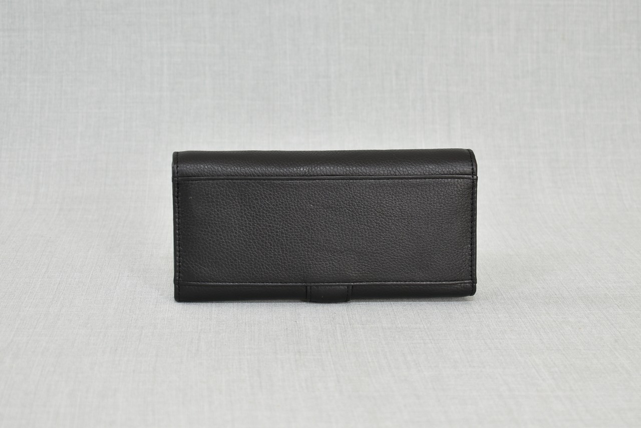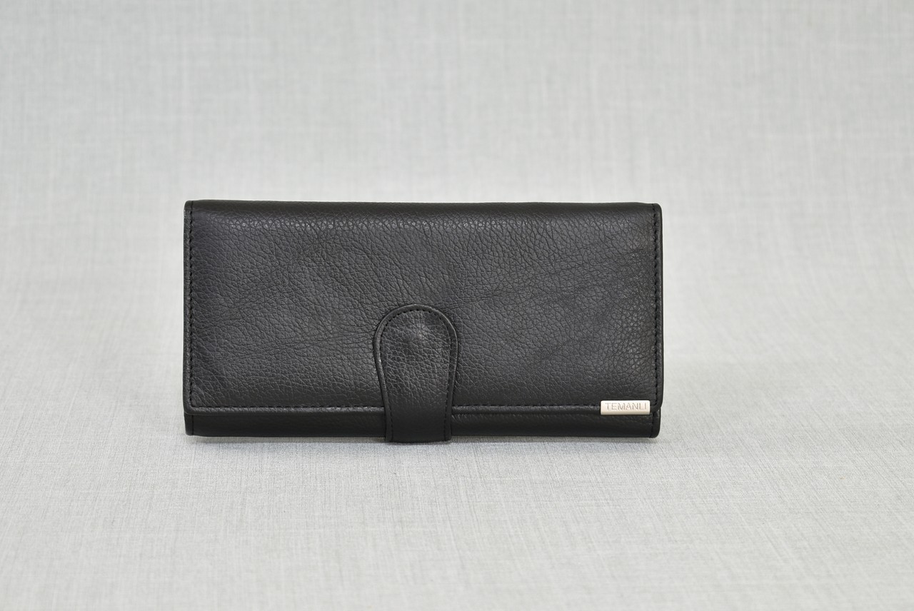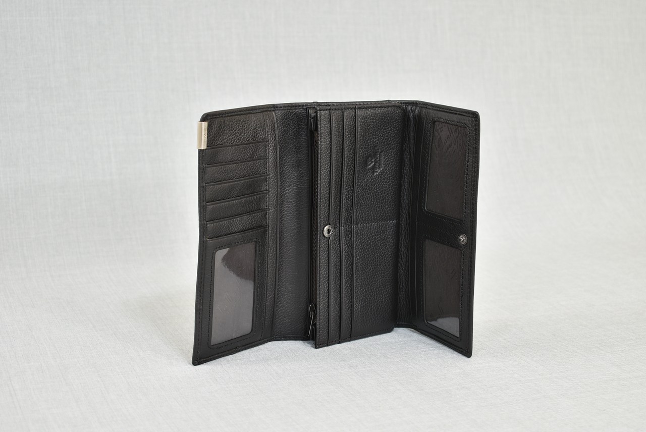 Арт. номер: 4202Дамско портмоне от естествена кожа, красиво и елегантно, създадено за ежедневен комфорт. Разполага с две отделения, джоб с цип за монети и практично място за карти. Затваря се сигурно с капак и копче капса.