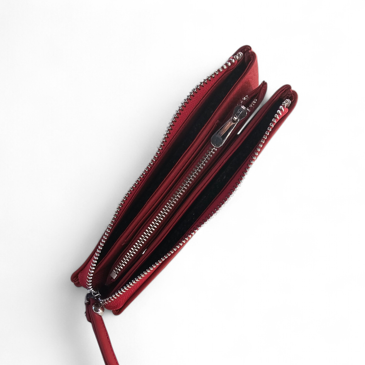 Арт. номер: 3640-2Стилно дамско портмоне от марка TORO NERO, съчетаващо практичност и изтънчен дизайн. Изработено от естествена кожа, то разполага с две отделения за банкноти, разделени с централен монетник. Множеството слотове за карти и визитки го правят идеално за динамичното ежедневие, а каишката за ръка позволява използване като компактен клъч.