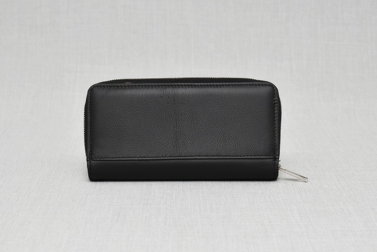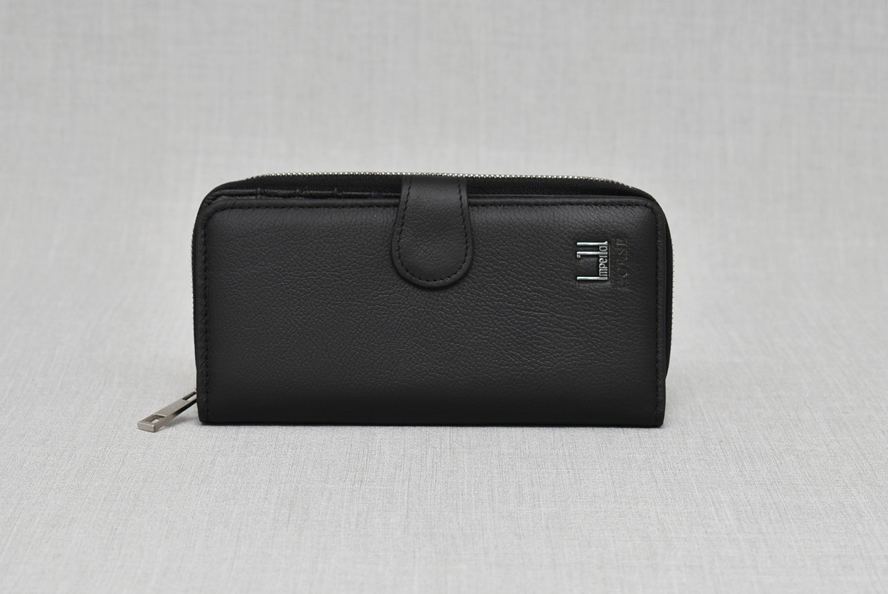 Арт. номер: 1090Дамско портмоне от естествена кожа – елегантен и изискан аксесоар за всяка дама. Разполага с две отделения за банкноти, голям джоб с цип и удобни отделения за карти. Закопчава се с копче капса и се предлага в стилна луксозна кутия, подходяща за подарък. Перфектен баланс между практичност и женствен чар.
