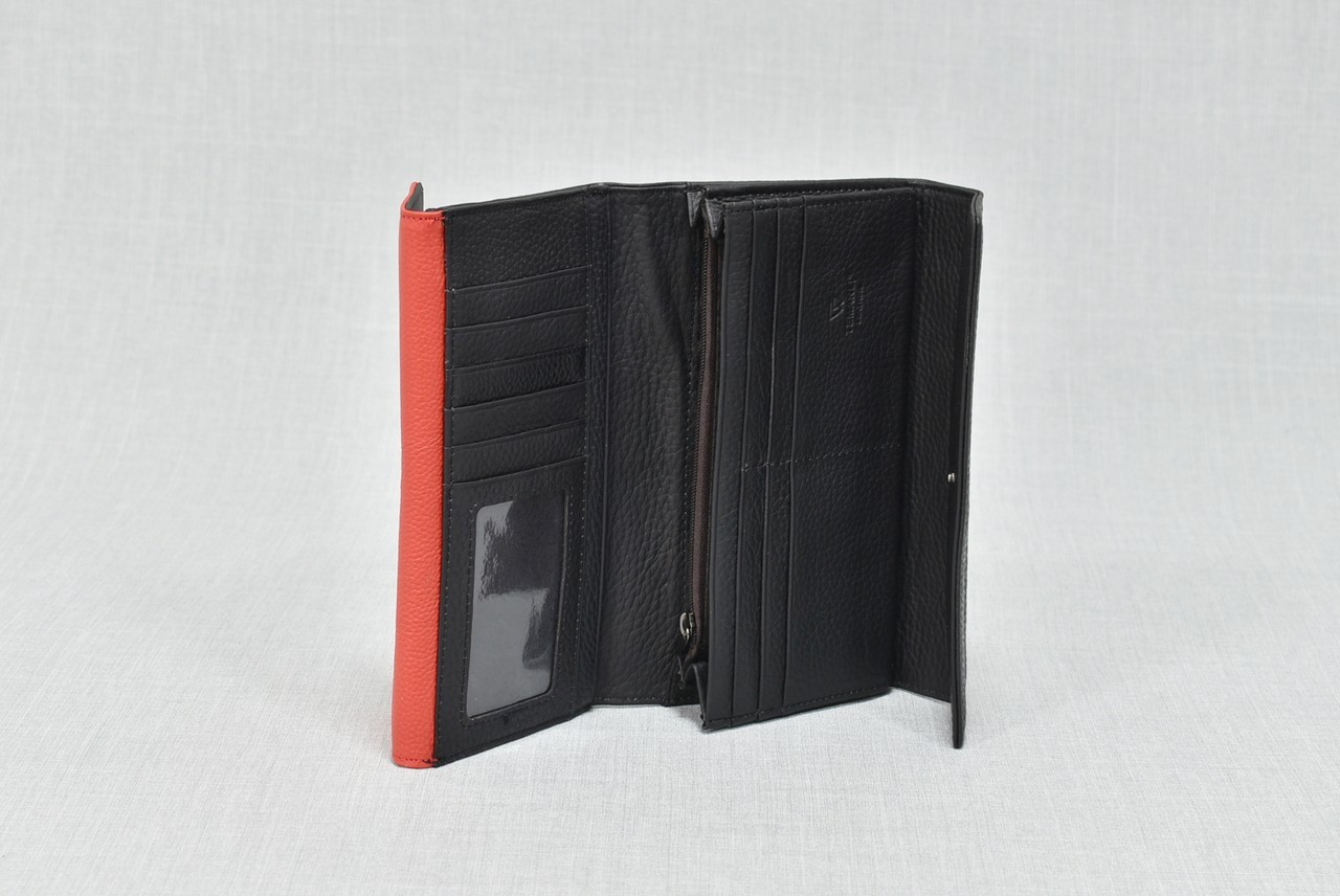 Арт. номер: 266Дамско портмоне от естествена кожа, красиво и елегантно, с две отделения за банкноти, практични места за карти, джоб с цип за монети и голям външен джоб за бърз достъп. Идеален избор за стил и удобство в ежедневието.