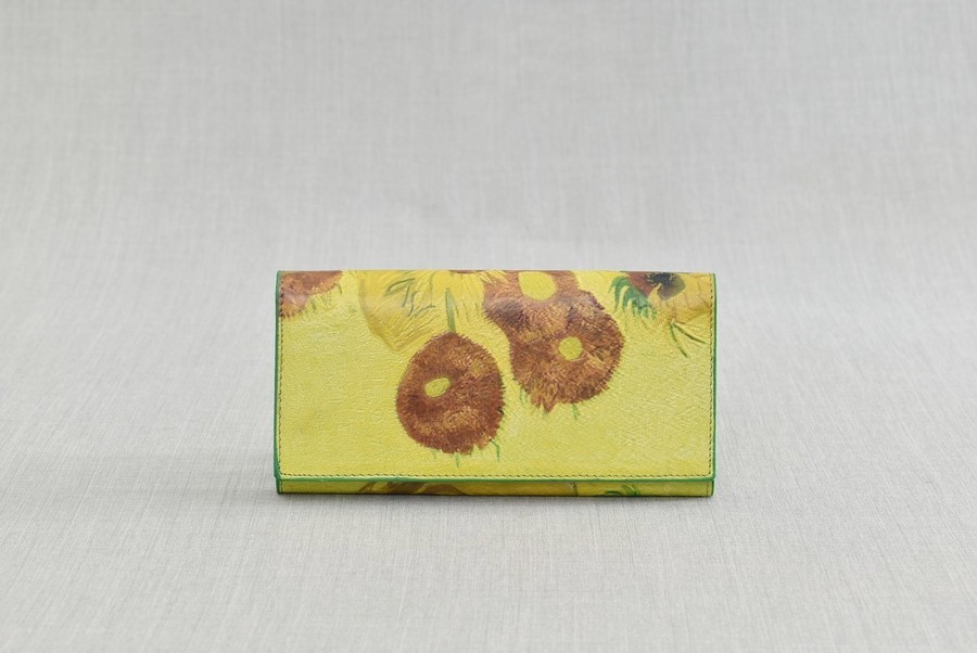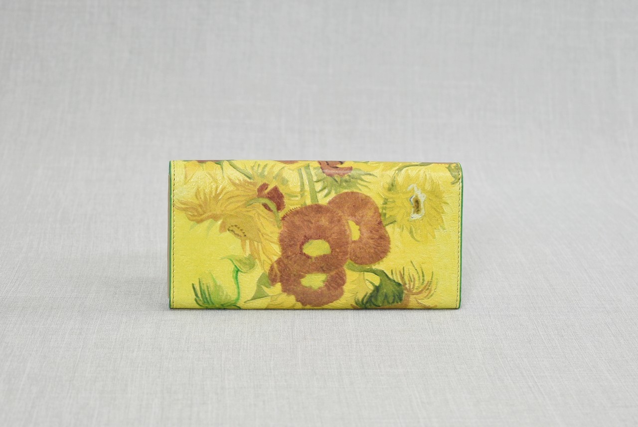 Арт. номер: 456Елегантно портмоне от естествена кожа с вдъхновяващи десени от картините на Ван Гог. Разполага с капак, няколко отделения за банкноти, множество слотове за карти и визитки, както и удобни джобове с цип. Комбинация от изкуство и практичност – перфектен аксесоар за всяка дама.