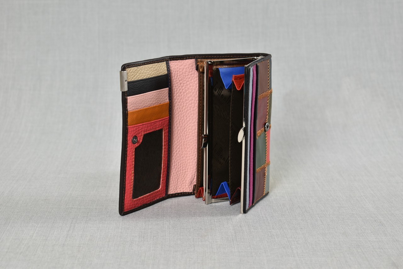 Арт. номер: 544Дамско портмоне от естествена кожа с капак и монетник – красиво, елегантно и създадено за ежедневна практичност. Моделът предлага три удобни отделения, място за карти и функционален джоб на гърба. Предлага се в различни цветови комбинации, което го прави подходящ избор за всеки стил. Портмонето идва в луксозна кутия, идеална за подарък.