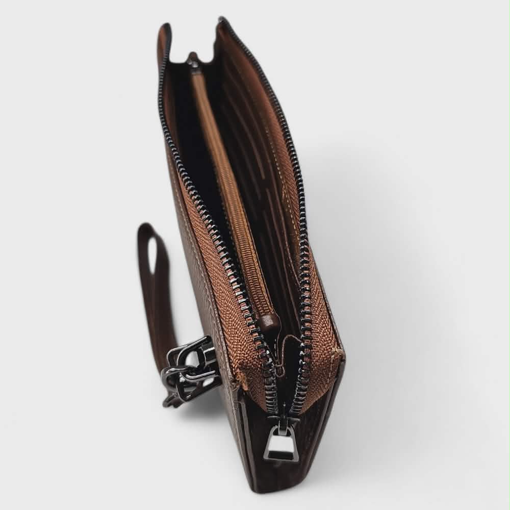Портмонето предлага изобилие от места за карти и визитки, осигурявайки удобен достъп и подреденост. От задната страна е добавена кожена дръжка за ръка, както и допълнителна дръжка, позволяваща портфейлът да се носи удобно на китката. Класическата визия и изчистеният дизайн го правят подходящ както за ежедневна употреба, така и за по-официални поводи.